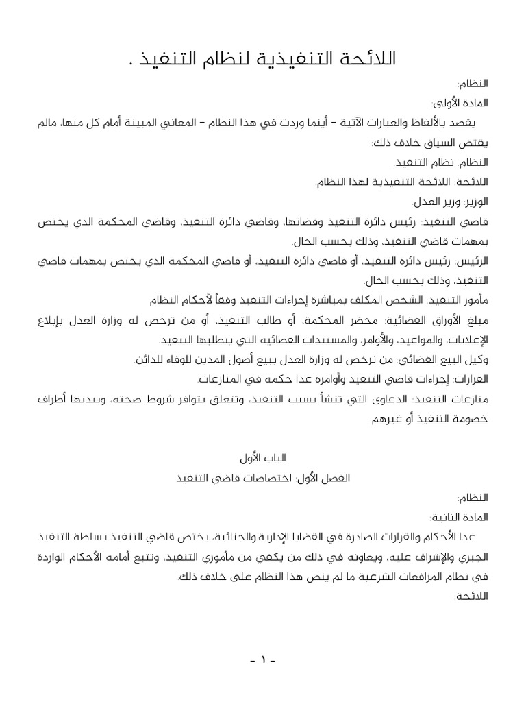 اللائحة التنفيذية لنظام التنفيذ شعبان 1439