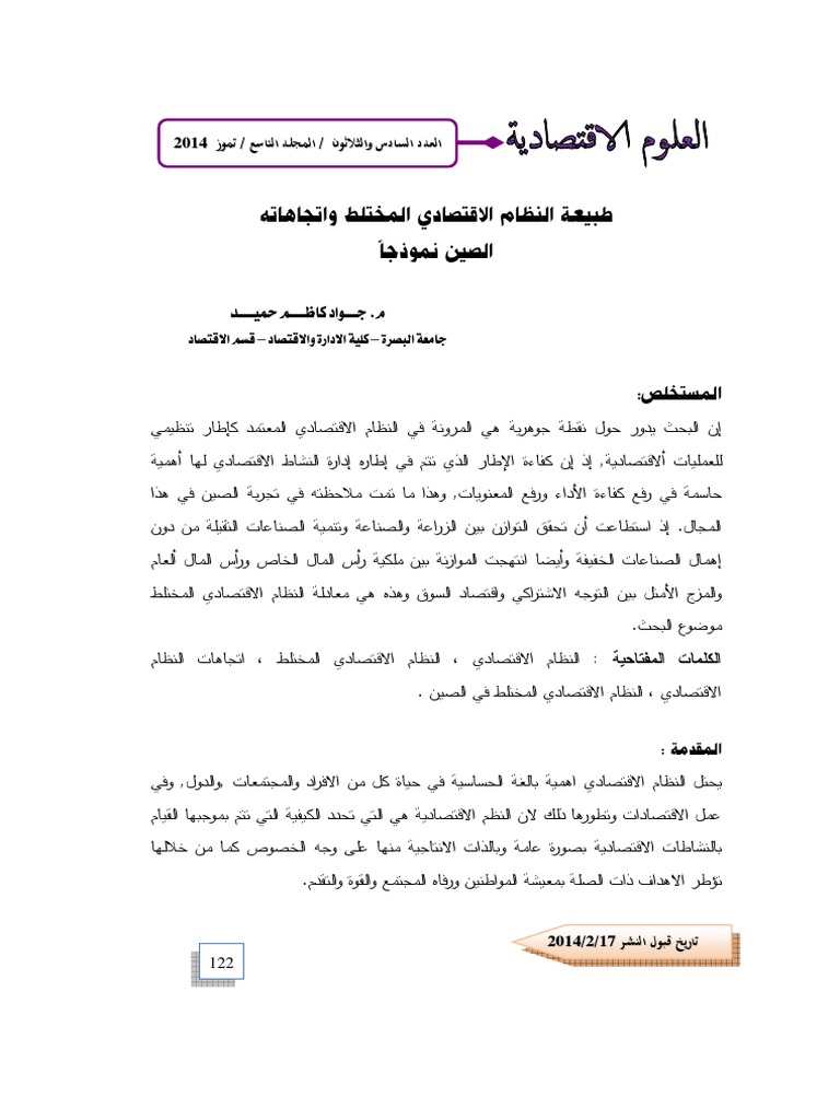 طبيعة النظام الاقتصادي المختلط واتجاهاته الصين نموذجا