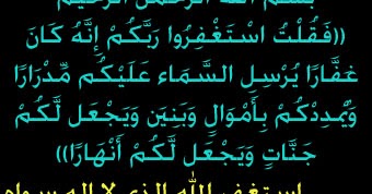 ف ق ل ت اس ت غ ف ر وا ر ب ك م إ ن ه ك ان غ ف ار ا ي ر س ل الس م اء ع ل ي ك م م د ر ار ا و ي م د د ك م ب أ م و ال