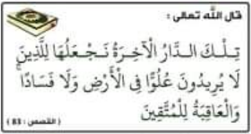 ت ل ك الد ار الآخ ر ة ن ج ع ل ه ا ل ل ذ ين لا ي ر يد ون ع ل و ا ف ي الأ ر ض و لا ف س اد ا