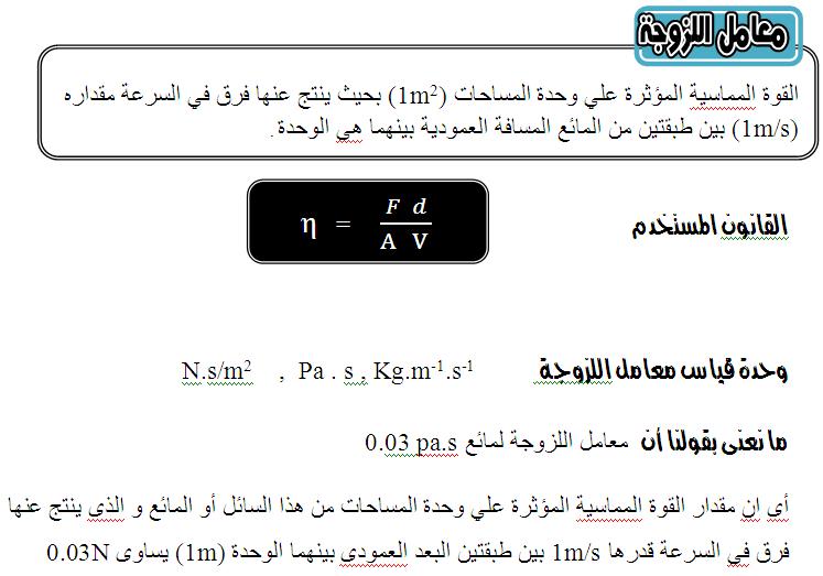 اللزوجه Viscosity بالتفصيل للصف الثاني الثانوي