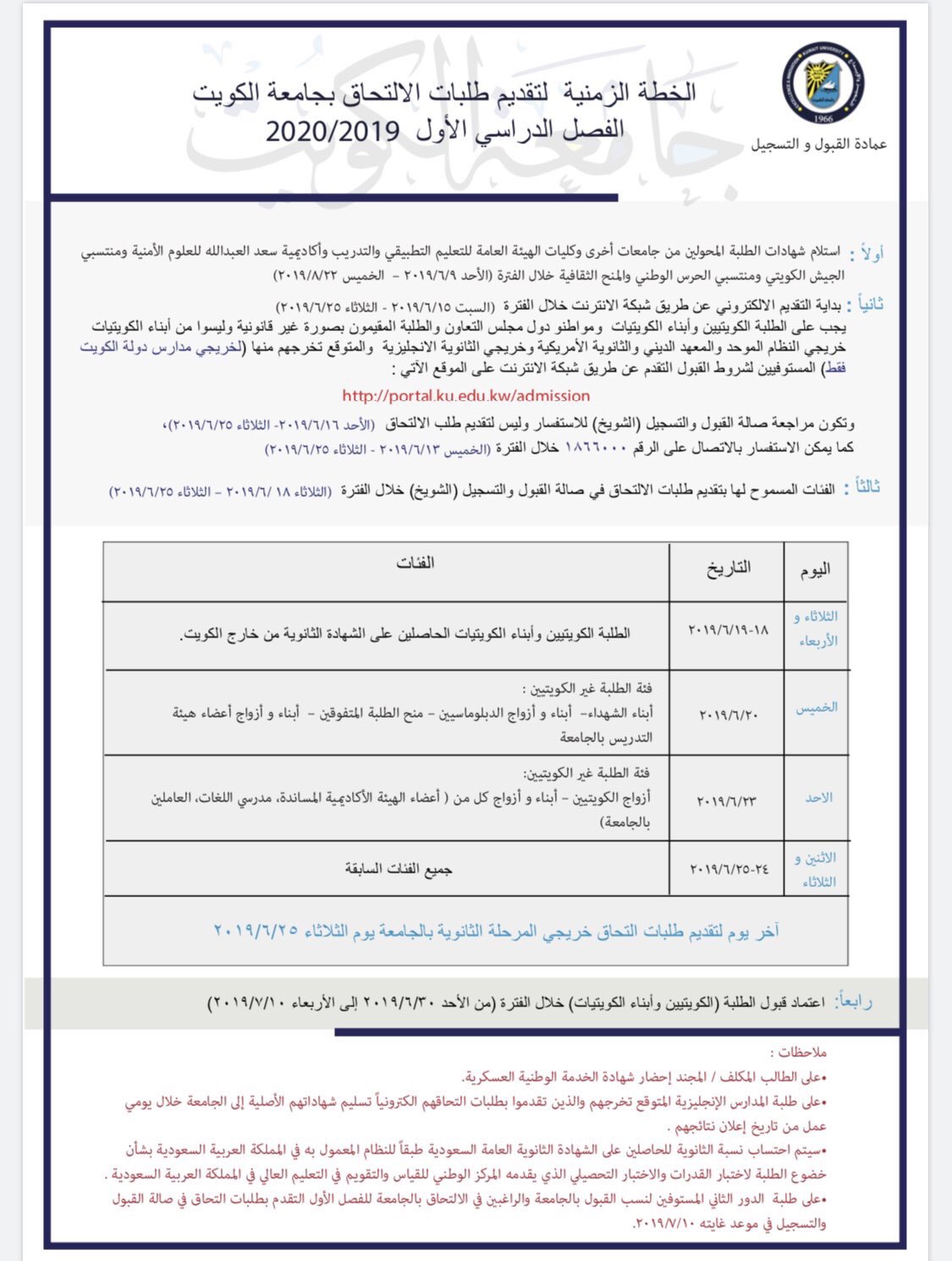 عمادة القبول والتسجيل جامعة الكويت Twitterissa الخطة الزمنية للقبول الفصل الأول 2018 2019 جامعة الكويت Kuniv الكويت