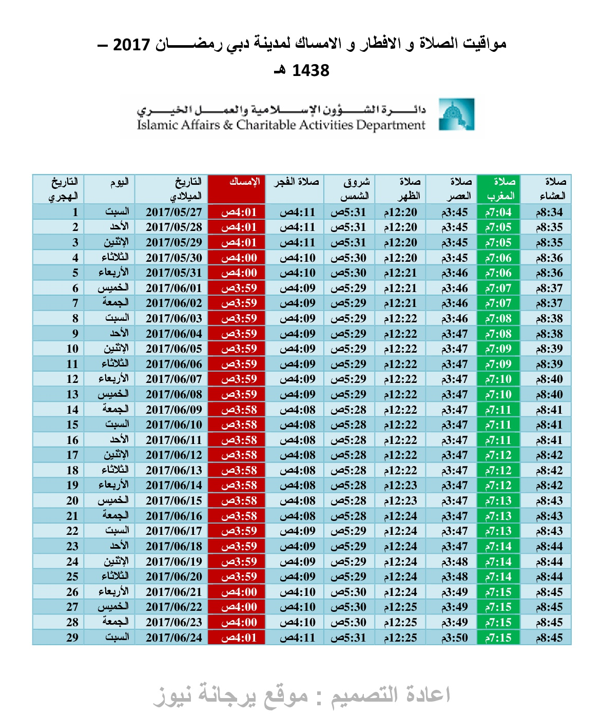 امساكية رمضان 2017 دبي الامارات تقويم 1438 Ramadan Imsakia