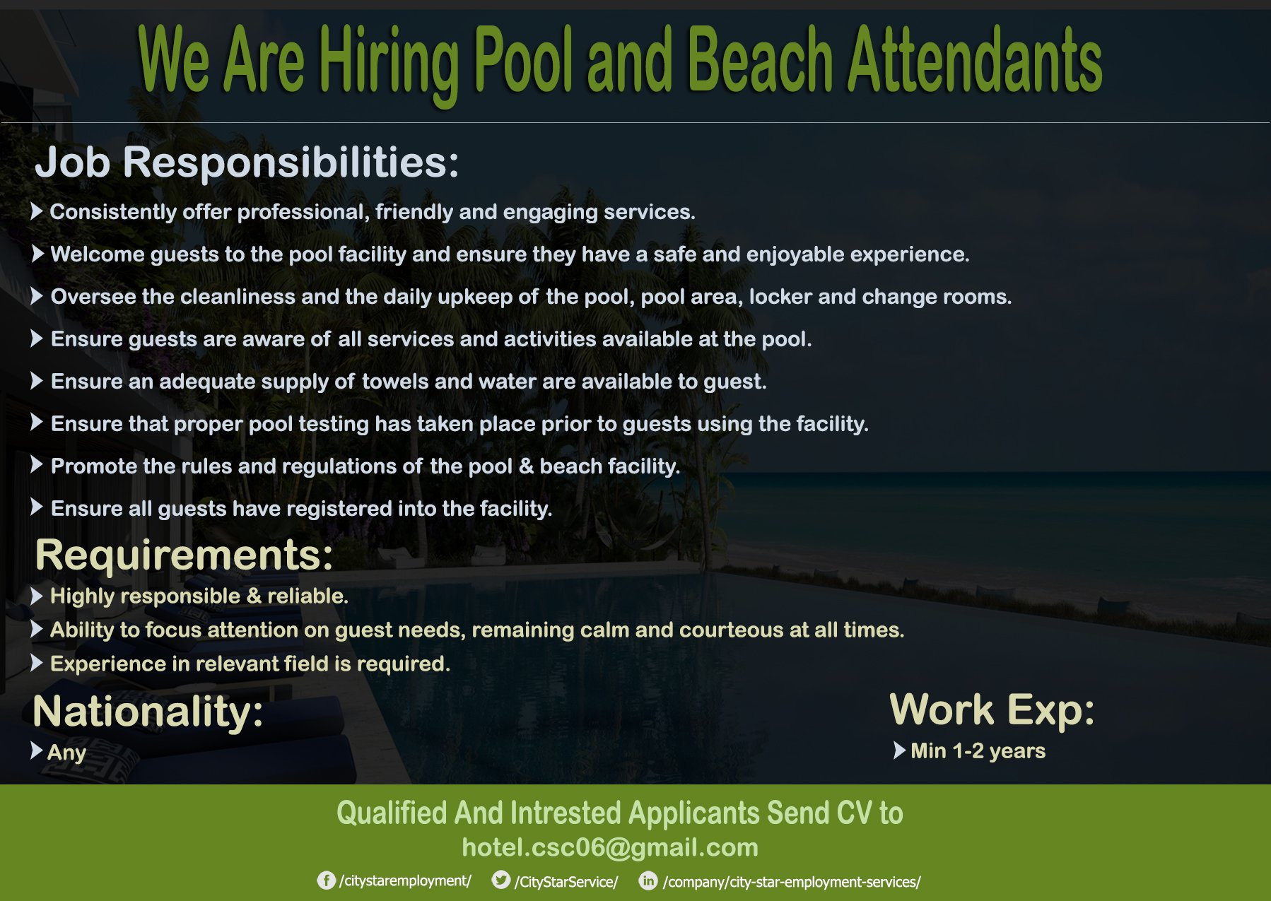 City Star Employment On Twitter Citystar Is Looking For Pool And Beach Attendants Send Your Cv Now Hiring